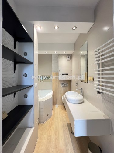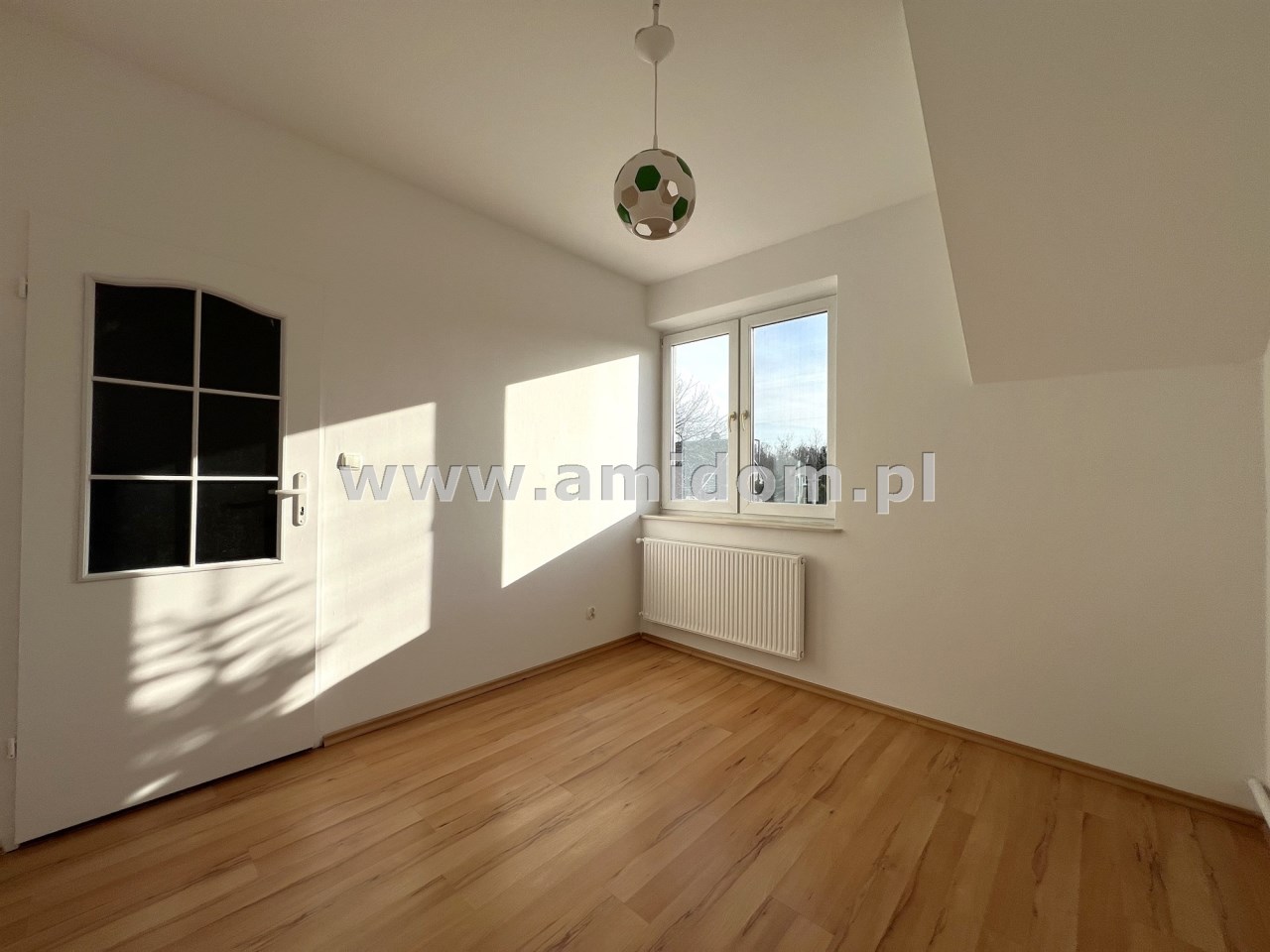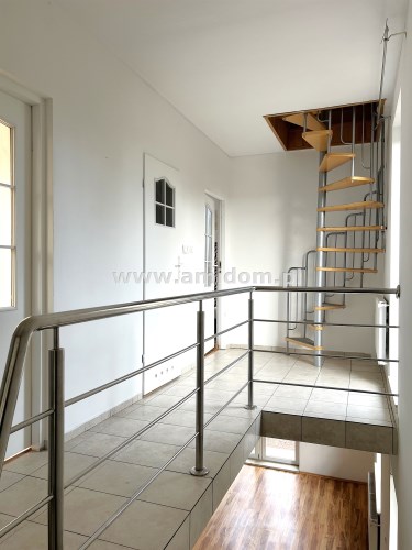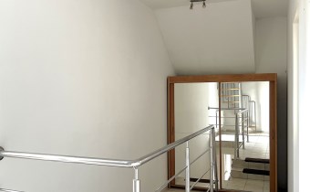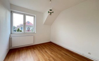 Na piętrze znajduje się duża ok. 20m2 sypialnia, pokój oraz łazienka z dużą wanną, balkon. Możliwość podzielenia sypialni na dwa mniejsze pokoje.