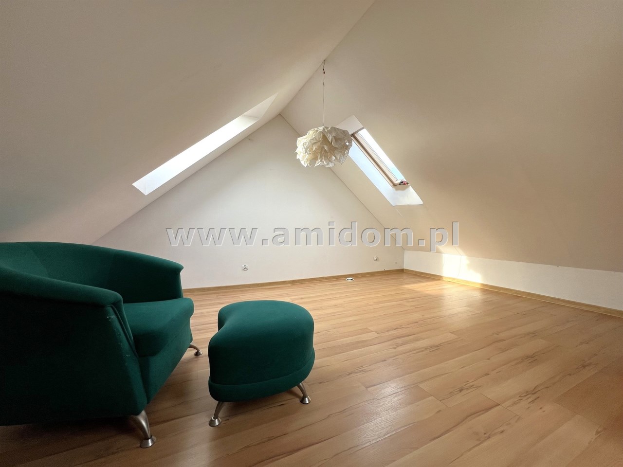 Dodatkowa sypialnia znajduje się na zagospodarowanym poddaszu - po podłodze ok. 20 m2.